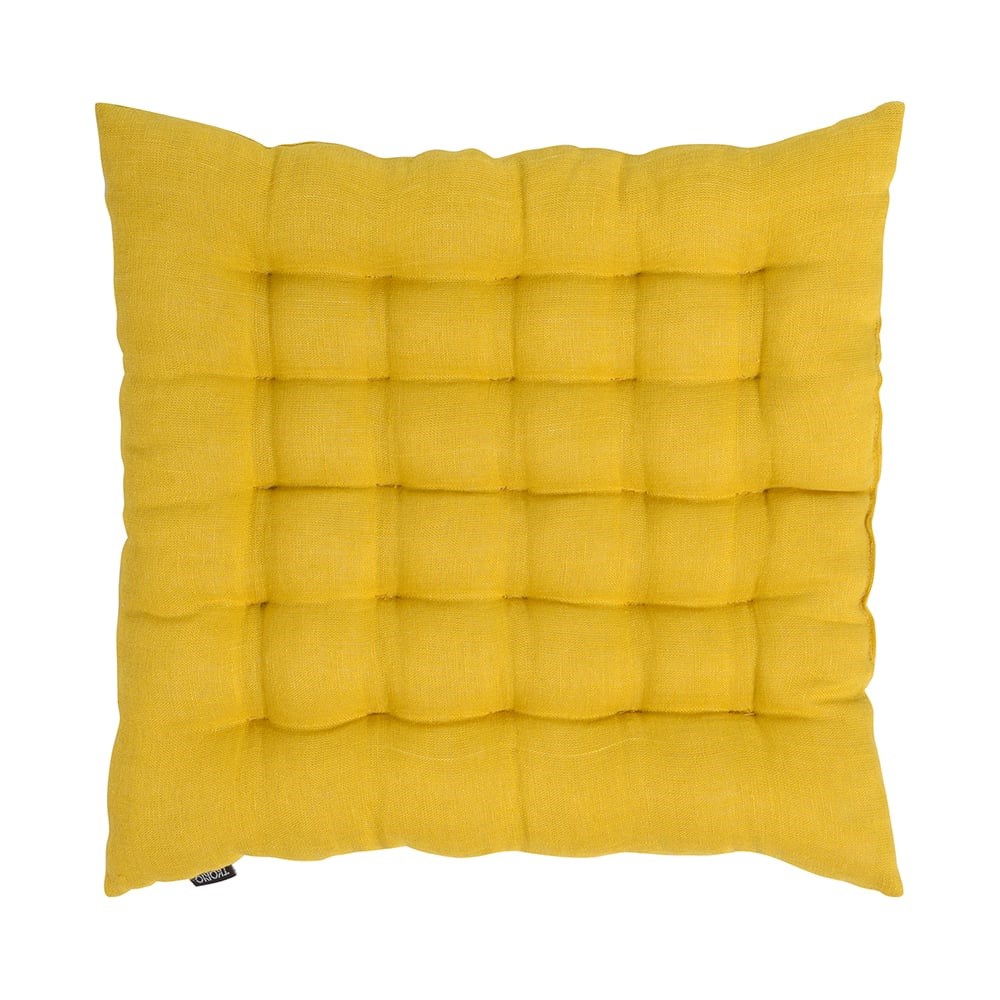 Подушка на стул Tkano коллекция Essential из стираного льна горчичного цвета, 40x40x4 см
