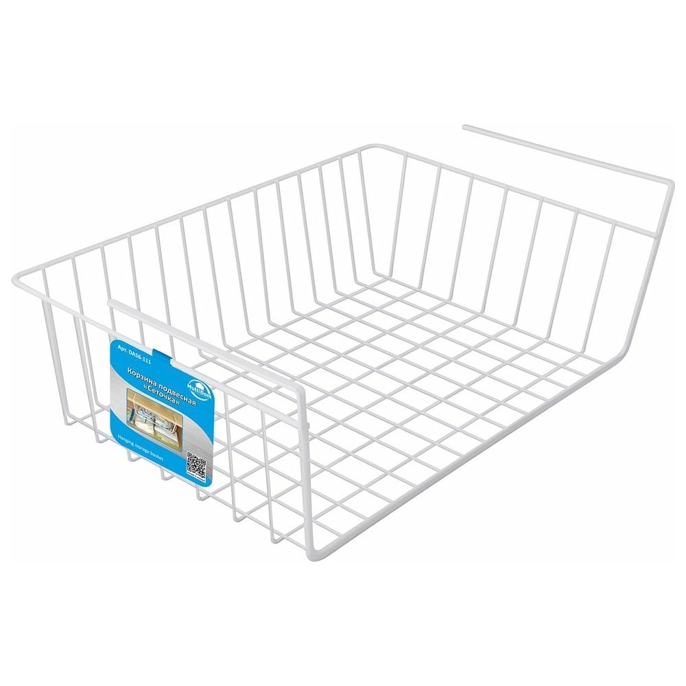 Подвесная корзина МУЛЬТИДОМ Сеточка размер 41х26х14 см DA56-111 предназначена для организации пространства. За счет сетчатой конструкции не скапливает пыль, что облегчает уход. Выполнена из металла, поэтому отличается прочностью, что продлевает срок ее службы. Благодаря эмалевому покрытию не ржавеет, поэтому не боится влаги.