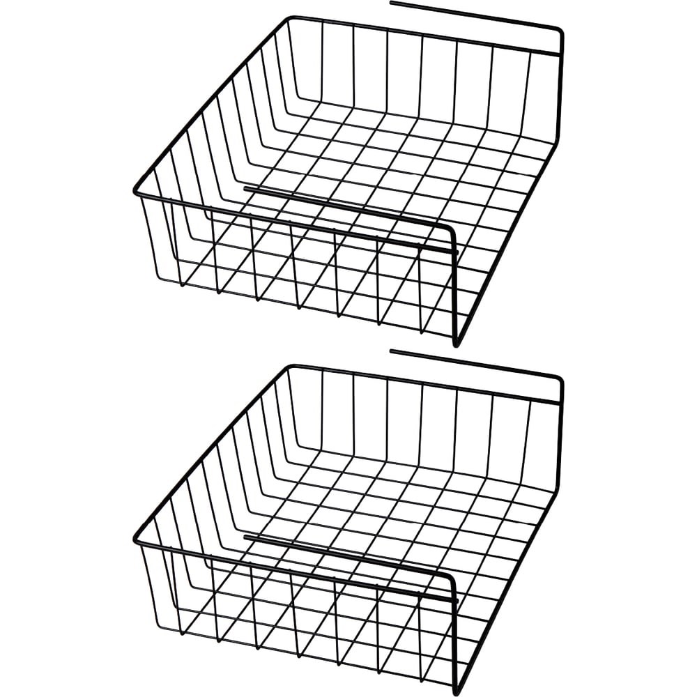 Подвесная широкая корзина Violet черная, 2 шт. N-713/2-07 - универсальный органайзер для хранения, дополнительная навесная полка в шкаф или на дверцу с креплением. Изделие можно использовать на кухне, в спальне, ванной, коридоре, гостиной, гардеробе, кладовке и в любом другом помещении. Универсальная корзина устанавливается в любой шкаф с полками, холодильник или вертикально навешивается на дверцу. Держатель рассчитан на толщину полки до 2 см. В корзинке можно хранить посуду, кухонные принадлежности, продукты, овощи, книги, постельное и нижнее белье, полотенца, вещи, бытовую химию и так далее. Такой рейлинг – незаменимая вещь в каждом доме, он поможет создать систему хранения, навести порядок и разложить все вещи по полочкам.