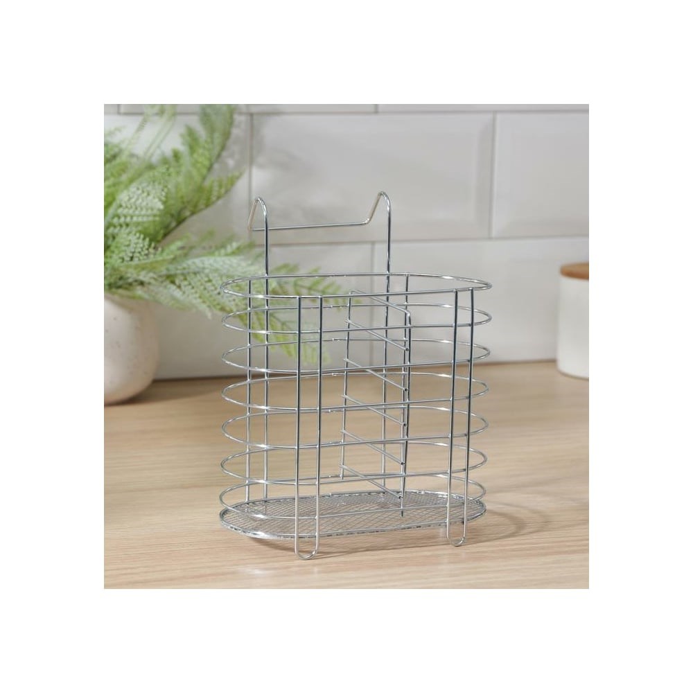 Подвесная сушилка для столовых приборов Доляна d = 1,5 см, 16,5х15,5х12 см, цвет хром 673806 предназначена для установки на кухне. Благодаря высокой прочности прослужит долгое время. За счет открытой конструкции легко моется, поэтому не требует сложного ухода. Современный дизайн сушилки впишется в любой интерьер.