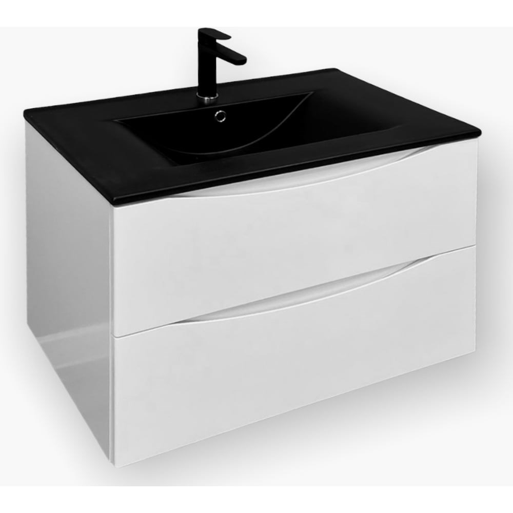 Тумба с раковиной подвесная 80см BOND Cube T01800-S05B Материал: фасад МДФ с интегрированными ручками, покрыт высококачественной премиальной краской испанского производства, цвет - белый глянец. Корпус: ЛДСП белый глянец. Направляющие скрытого монтажа полного выдвижения с доводчиками. Внутри ящики серого цвета. Раковина черная матовая в комплекте: BOND S05-808.