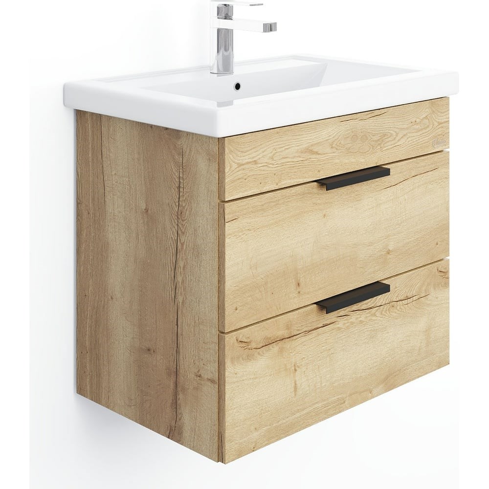 Подвесная тумба для ванной комнаты Onika Легран 50 - это сочетание насыщенного древесного декора и благородства металла: роскошная текстура и натуральный цвет дуба дают теплоту, а матовые металлические ручки добавляют урбанизма и солидности. Два ящика тумбы плавно открываются и закрываются благодаря направляющим полного выдвижения с доводчиками. Нижний ящик предназначен для больших предметов, а верхний, имеющий удобную систему организации пространства, - для мелких аксессуаров. Тумба выполнена из ЛДСП, устойчивой к механическим воздействиям, перепадам температур и высокой влажности, при этом она надежно крепится к стене и не занимает место на полу, не создавая при этом сложностей в уборке помещения. Ручки и подвесы для крепления тумбы - в комплекте. Размеры тумбы без учета раковины: 47х38х50 см.Размеры тумбы с учетом раковины: 50х40х54,5 см. Гарантия на изделие 2 года. Совместимая раковина - Kirovit Фостер 50.