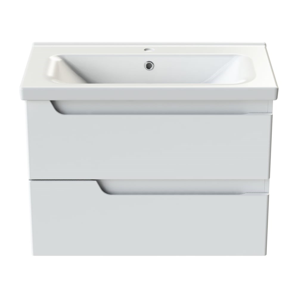 Подвесная тумба Orange TOPLINE Milano 80-02 с умывальником TP-MR80 дополнительные характеристики: Фасад и корпус - МДФ 16 мм в эмали (белый глянец, производство - Италия). Интегрированные ручки. Два выдвижных ящика с механизмом плавного доведения. Навесы усиленные с планкой.