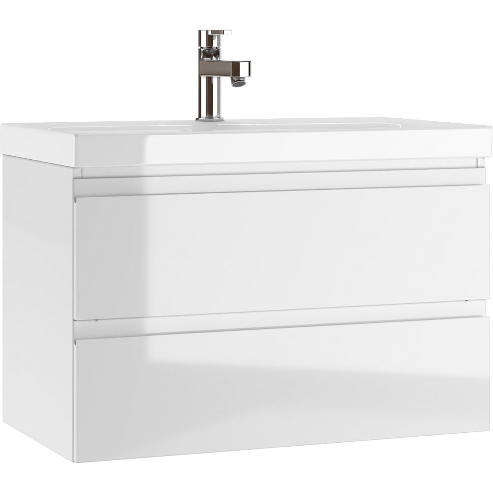 Подвесная тумба Домино Graffo В2 под умывальник Moduo 80 белый глянец DGr2103Tв стиле минимализм позволит создать уникальный интерьер.Подвесной монтаж обеспечит дополнительное пространство в комнате.Корпус изготовлен из ЛДСП и покрыт эмалью, фасад из ЛМДФ также покрыт влагостойкой высокоглянцевой эмалью.На мебели установлены направляющие полного выдвижения.Изделие обладает повышенной влагостойкостью и сопротивляемостью к внешним воздействиям, не выделяет вредных испарений в воздух, хорошо выдерживает воздействия бытовых химических веществ.Поставляется в собранном виде. 2 года гарантия производителя.