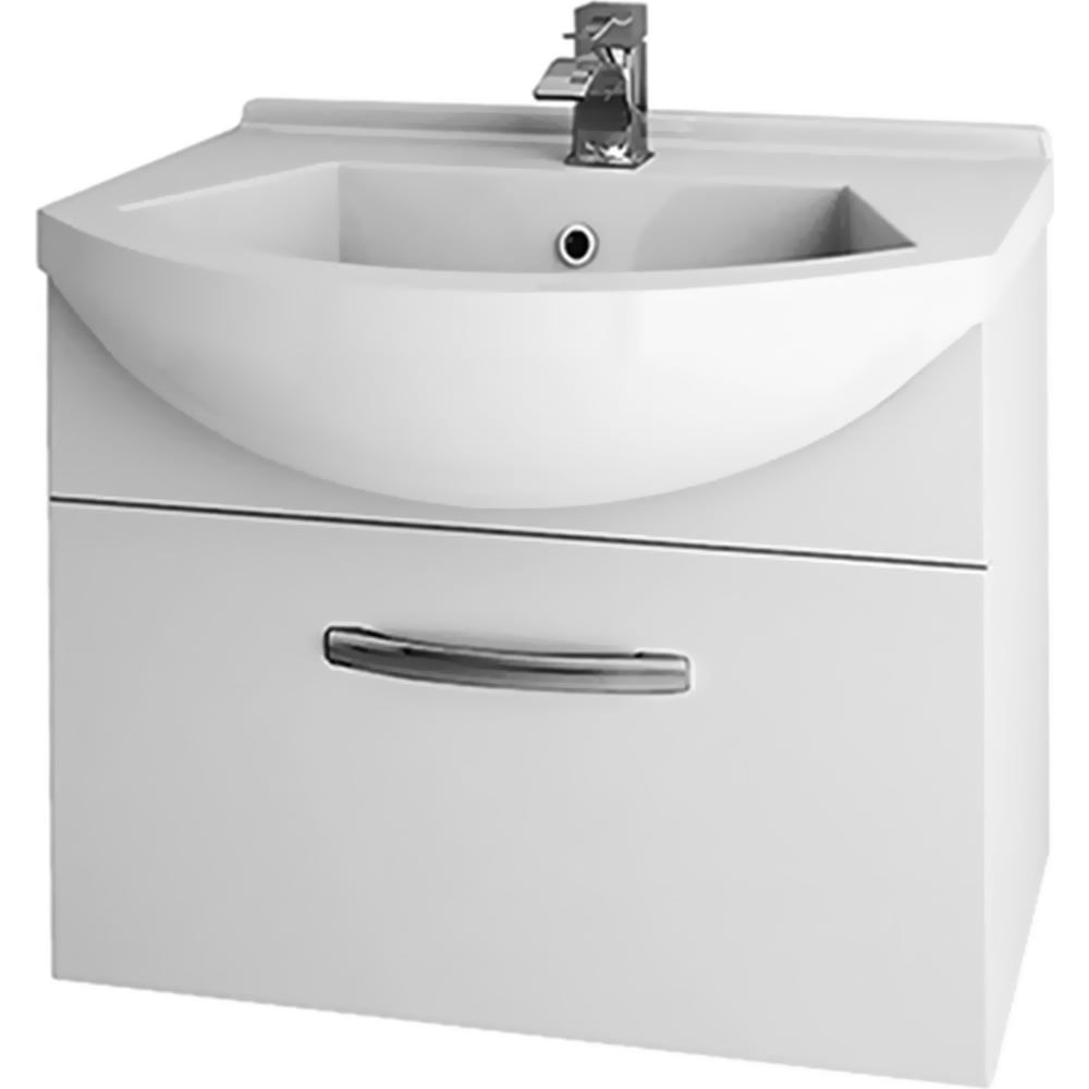 Подвесная тумба с раковиной Dreja ALFA, 55 см, 1 ящик, белый глянец - 99.0305-195452 99.0305K