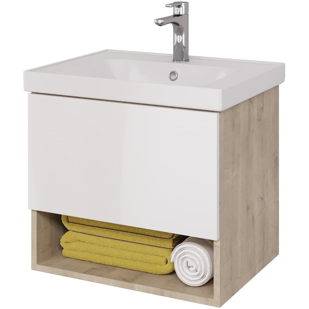 Подвесная тумба с раковиной Dreja PERFECTO, 60 см, 1 ящик, дуб эврика/белый глянец - 99.0811-641587 99.0811K