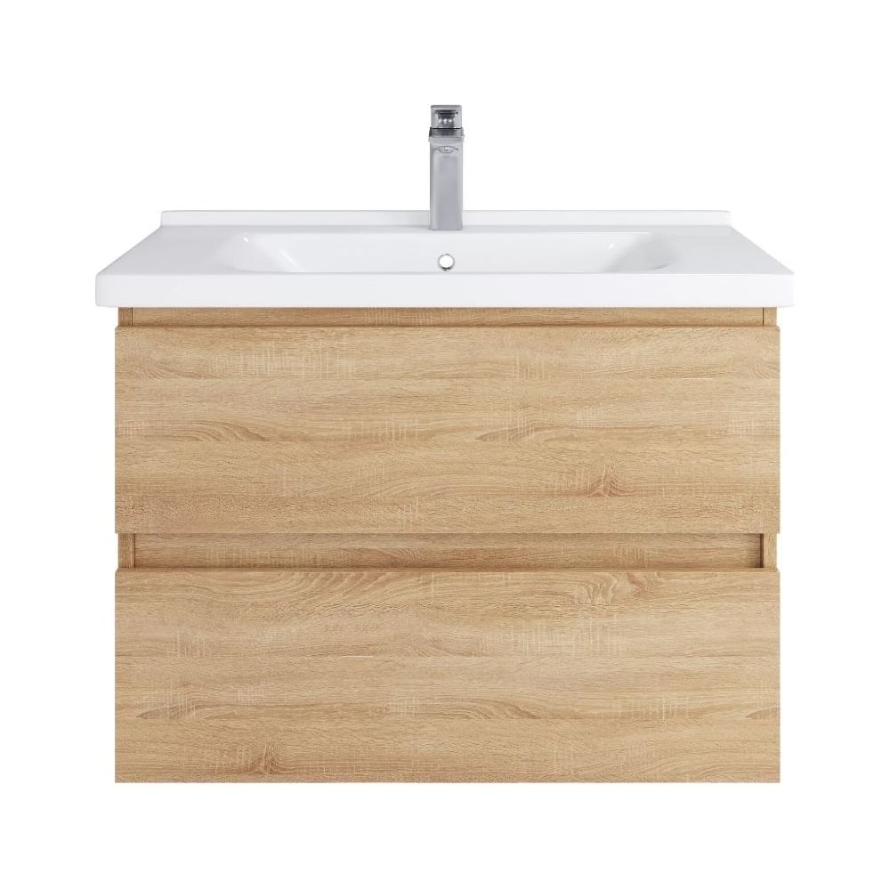 Тумба подвесная SanStar Тоскана 80 с раковиной Миранда 80 (комплект) для ванной комнаты белая производится на российском заводе, оснащенном высокотехнологичным европейским оборудованием под брендом SanStar. Под контролем отдела качества, с соблюдением ТУ и ГОСТ. Товар относится к серии Практик, отличительной особенностью которой являются оптимальное соотношение качества и цены. А линейка мебели Тоскана, выполненная в современном стиле, внесет в Вашу ванную комнату неповторимый дизайн и обновление. Дополнительно к тумбе возможно приобрести полный комплект мебели Тоскана, а именно зеркало или зеркальный шкаф, шкаф-пенал. Основные характеристики товара: Ширина 80,5 см, Высота 59,5 см, Глубина 45,5 см, Толщина материала 1,6 см, Вес 54 кг. Цвет мебели: дуб сонома светлый. Для изготовления корпуса и фасада используется влагостойкий ЛДСП - покрытие матовое. Фурнитура - хром. Два выдвижных ящика с направляющими скрытого монтажа и доводчиками Boyard. В комплект входят крепления к стене. Товар доставляется в предварительно собранном виде, состоит из 2 мест, надежно упакованных в пятислойный гофрированный картон. Страна производства Россия, гарантия 3 года, сертификат безопасности ТР ТС 025 RU Д-RU.АЖ.47.В.03010/18, код ТН ВЭД 9403609009. В набор входит раковина. Материал - фаянс. Миранда 80. Размеры изделия могут отличаться +/-1 см в связи со спецификой производства. Пожалуйста, учитывайте это при подборе.