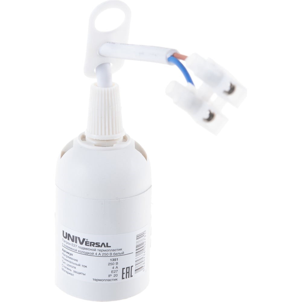 Подвесной патрон с клеммной колодкой UNIVersal Е27 термопластик 4А 250В белый 1351