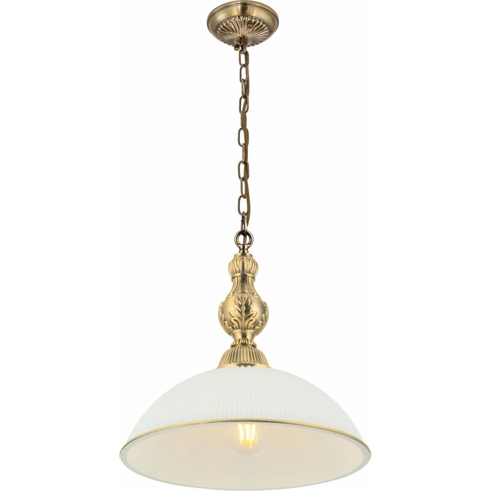 Светильник Citilux Адриана CL405213 в классическом стиле. Основание металлическое, цвет бронза. Плафон стеклянный, матовый, рифленый с благородной золотистой окантовкой. Высота подвеса легко регулируется при установке в диапазоне от 33см до 1м. Более того, изделие можно использовать как потолочную модель, вообще без элементов цепи. В светильнике 1 лампа с цоколем Е27 максимальной мощностью для ламп накаливания 75Вт. Светодиодные лампы можно устанавливать более яркие. Площадь освещения около 4,5м². Тип крепления к потолку-планка.