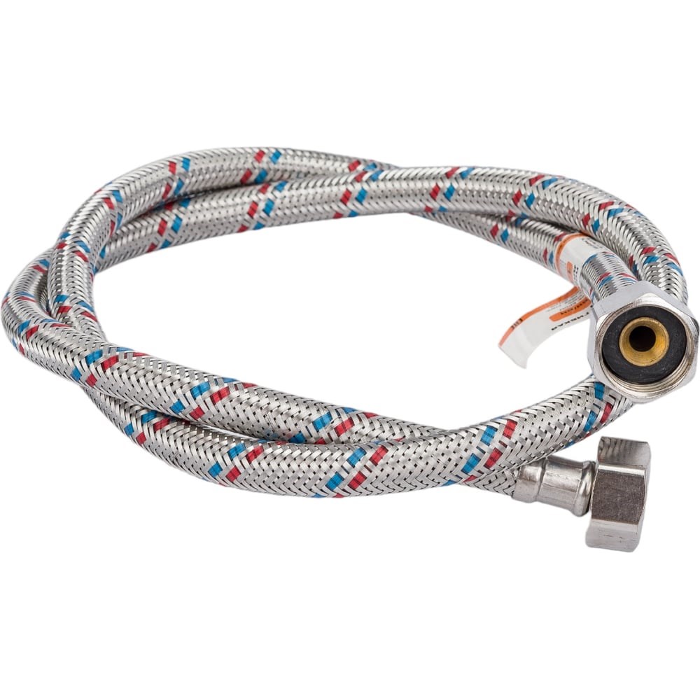 Подводка для воды 521378 предназначена для соединения сантехники с магистралью холодного или горячего водоснабжения. Подходит для металлополимерных, медных, стальных труб, для труб из сшитого полиэтилена. Применяется для подключения смесителей, стиральных машин и др. Изготовлена из качественных материалов, за счет чего отличается продолжительным сроком службы. Материал накидной гайки - нержавеющая сталь AISI 201, оплетка изготовлена из нержавеющей стали AISI 301, рукава - резина EPDM, оплетена нержавеющей проволокой AISI 301. Внимание, изображение товара может отличаться от реального! Верные параметры указаны в технических характеристиках товара.