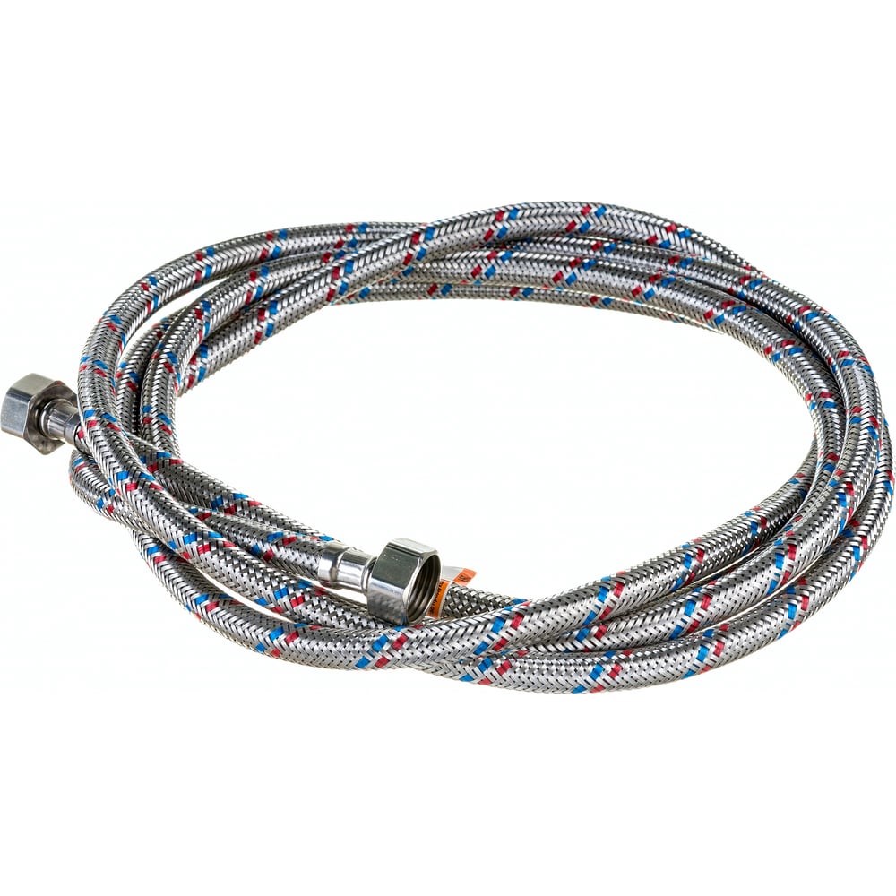 Подводка для воды 521388 предназначена для соединения сантехники с магистралью холодного или горячего водоснабжения. Подходит для металлополимерных, медных, стальных труб, для труб из сшитого полиэтилена. Применяется для подключения смесителей, стиральных машин и др. Изготовлена из качественных материалов, за счет чего отличается продолжительным сроком службы. Материал накидной гайки - нержавеющая сталь AISI 201, оплетка изготовлена из нержавеющей стали AISI 301, рукава - резина EPDM, оплетена нержавеющей проволокой AISI 301. Внимание, изображение товара может отличаться от реального! Верные параметры указаны в технических характеристиках товара.