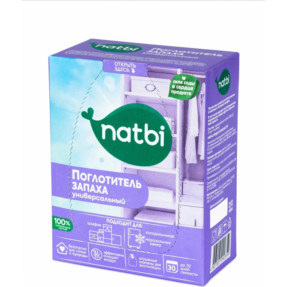 Поглотитель запаха NATBI универсальный, 400 г, к/п, для шкафа и холодильника 2359 эффективно очищает воздух, впитывает влагу и обладает антибактериальным действием. Поглотитель на основе экологически чистого абсорбирующего материала - специально подготовленной пищевой соды, мощного устранителя неприятных запахов, к тому же сода совершенно никак не пахнет, поэтому не влияет на качество и вкус продуктов, за счет способности поглощать выделяемый фруктами и овощами этилен и влагу, сохраняет их натуральные ароматы и увеличивает срок хранения. Главное отличие очистителя воздуха NATBI от искусственных освежителей и ароматизаторов воздуха, то, что он не маскирует, а полностью нейтрализует смрад. Средство для удаления запахов применяется в закрытых пространствах: для холодильника, морозильной камеры, микроволновки, духовки, также против запаха обуви и одежды для шкафа, гардеробной, кладовки и даже в авто багажнике. Антизапах не занимает много места, эргономичная упаковка уничтожителя запаха со сквозной вентиляцией и отрывными клапанами, ликвидатор легко использовать: просто вскройте упаковку, следуя инструкции на фото. Удалитель нежелательных ароматов обеспечивает свежесть на протяжении 30 дней. Блокатор абсолютно безвреден для пищи, гипоаллергенен, безопасен для дома с детьми и домашними животными.