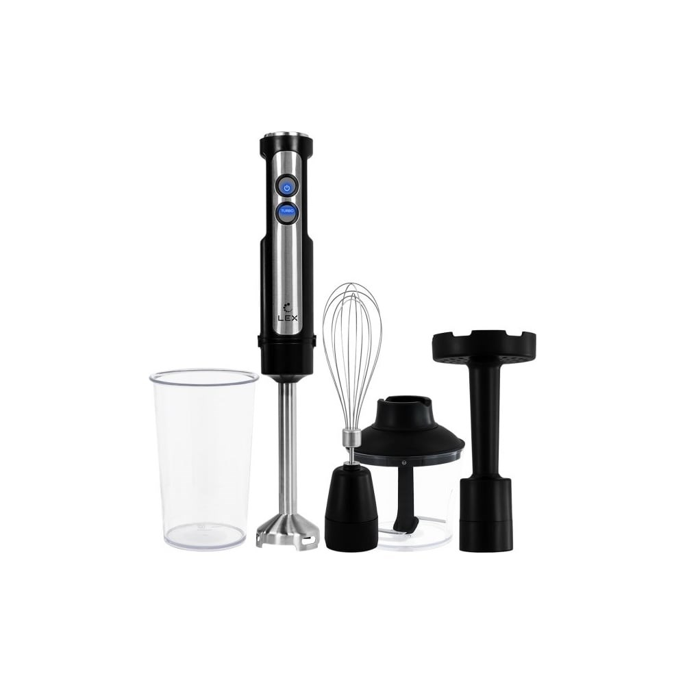 Любите пышные омлеты, безе, пюре? Предпочитаете домашние соусы? Модель LX 10011-2 создана специально для этого.Устройство имеет плавную регулировку скорости, турборежим, очень удобно в эксплуатации и позволяет за считанные минуты измельчать, пюрировать, смешивать, взбивать самые разные ингредиенты.Модель имеет мощность двигателя 1500 Вт и оснащена оптимальным набором дополнительных аксессуаров:погружные венчики для взбивания и перемешивания; удобный мерный стакан объемом 800 мл; насадку для пюрирования; чашу чоппера-измельчителя объемом 600 мл с ножами, приспособленными для работы с грубыми, сырыми продуктами (приготовления небольшого объема постного мясного фарша, измельчения зелени, орехов, овощей, начинок для пирогов, смешивания соусов и др.). Прибор прост не только в работе, но и уходе. Все элементы съемные и занимают минимум места.Для безопасной эксплуатации производитель предусмотрел встроенную защиту от перегрева и автоматическое выключение двигателя при перегрузке.Реализуйте любимые рецепты с LEX!