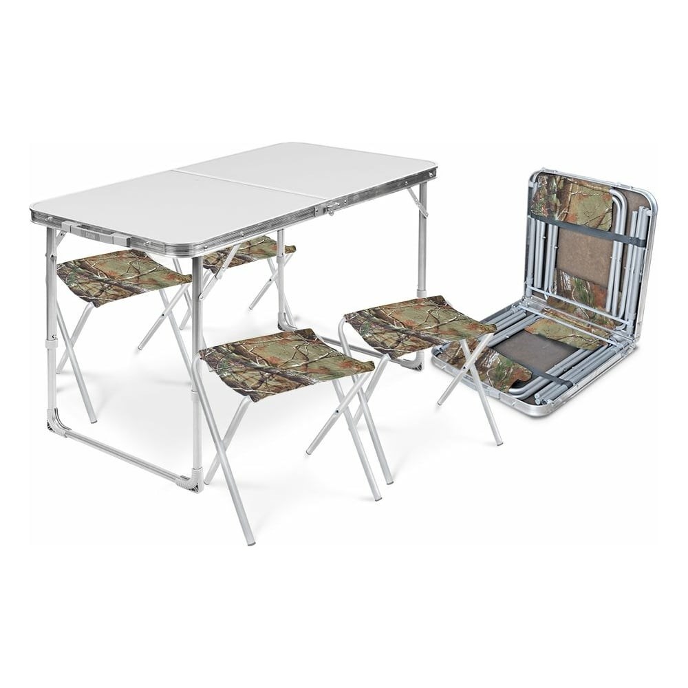 Набор складной мебели Nika серый металлик ССТ-К2/1 – отличный вариант для похода. Стол регулируется по высоте. Возможно два положения: 445мм и 610мм. Прочный влагостойкий пластик устойчив к высоким температурам и повышенной влажности. Это обеспечивает долгий срок службы. Сиденье выполнено из ткани с водоотталкивающей пропиткой, поэтому имеет простой уход.\ Дополнительные технические характеристики: Флокированный слой: нет Габариты в сложенном виде: 530x525x70 мм Водонепроницаемость: есть.