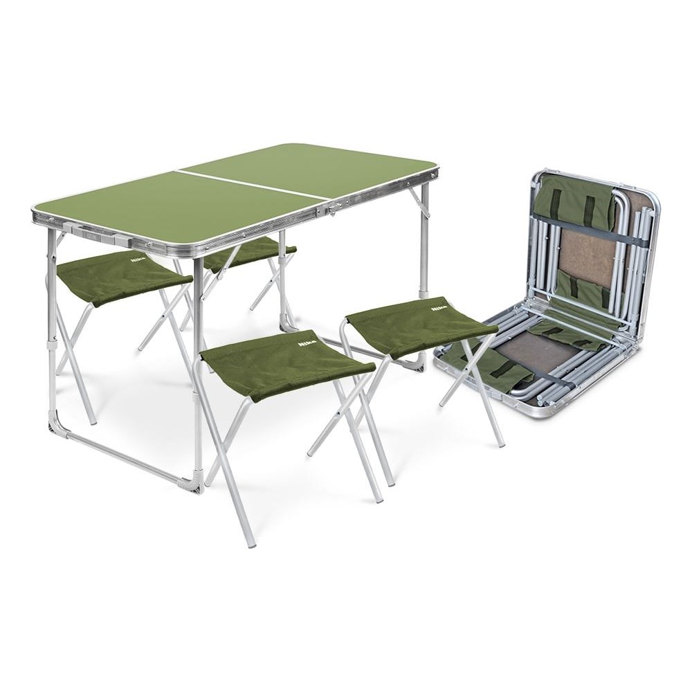 Набор складной мебели Nika темно-зеленый ССТ-К2/2 – отличный вариант для похода. Стол регулируется по высоте. Возможно два положения: 445мм и 610мм. Прочный влагостойкий пластик устойчив к высоким температурам и повышенной влажности. Это обеспечивает долгий срок службы. Сиденье выполнено из ткани с водоотталкивающей пропиткой, поэтому имеет простой уход. Дополнительная техническая характеристика: Флокированный слой: нет Габариты в сложенном виде: 530x525x70 мм Водонепроницаемость: есть.