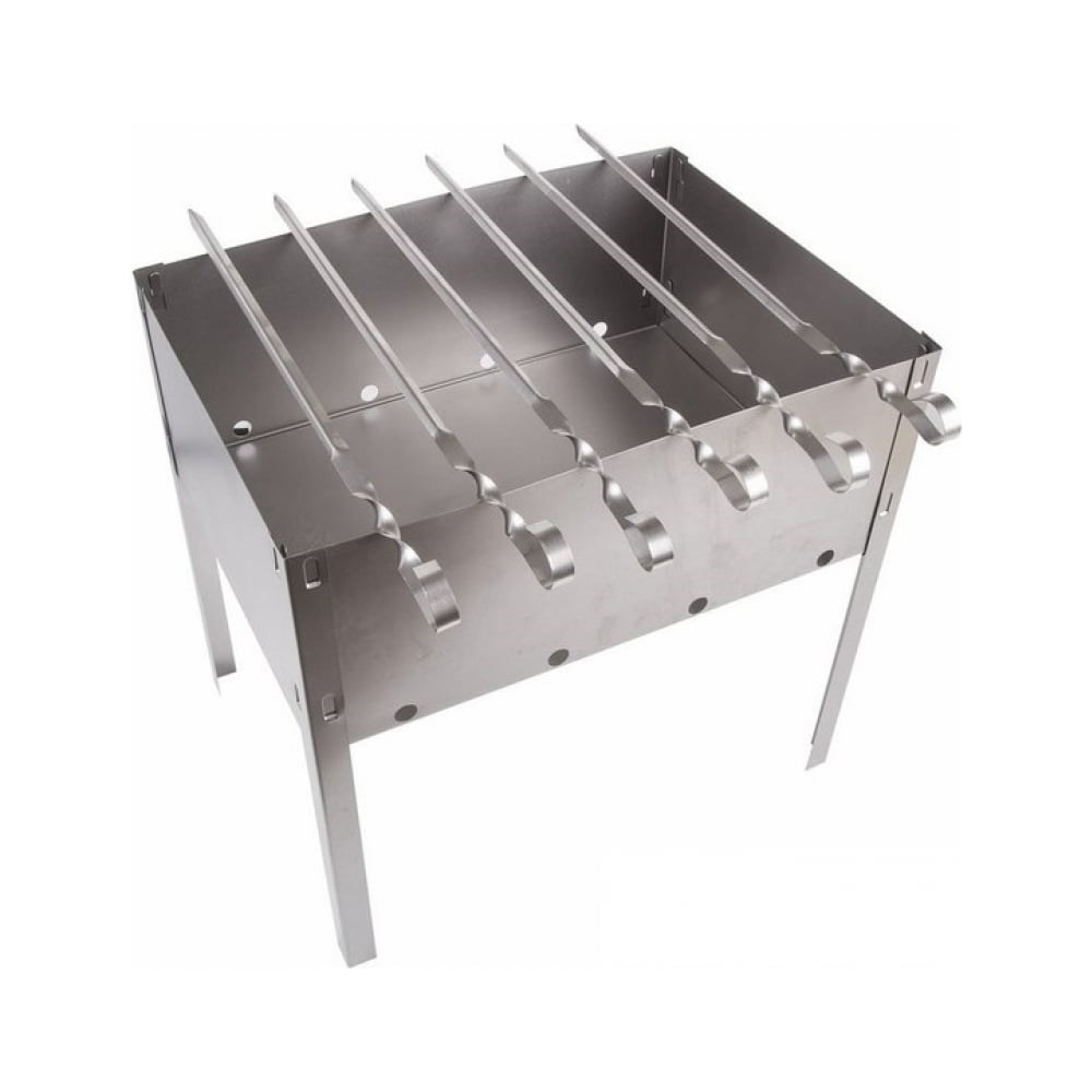 Походный компактный разборный мангал СОКОЛ изготовлен из стали, не подвергается тепловым деформациям от углей и дров. Предназначен для многоразового использования. Сборка и установка мангала производится вручную без использования специальных инструментов. На стенках жаровни предусмотрены специальные отверстия для интенсивного горения. Общая высота ножек 350 мм оптимальна и удобна для приготовления шашлыков. Размеры жаровни 350х250 мм позволяют разместить шампуры и получить порцию блюда, рассчитанную на небольшую компанию. В разобранном виде мангал не занимает много места и легко помещается в багажник автомобиля. В комплекте предусмотрены 6 угловых шампуров размером 370х10х0.6 мм.