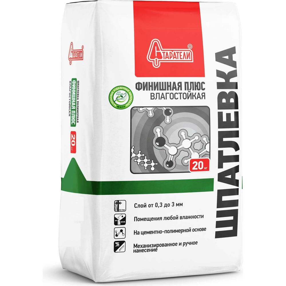 Шпатлевка полимерная влагостойкая Старатели Финишная Плюс 20 кг 3277/3431 применяется для тонкослойного выравнивания стен и потолков внутри помещений с нормальным и повышенным уровнем влажности с целью получения высококачественной финишной поверхности под последующую окраску, оклейку тонкими обоями и другие виды декоративных покрытий. Тип основания Бетон, железобетон Ячеистый бетон (пено- и газобетон) - возможно Цементная штукатурка - возможно Гипсовая штукатурка, ПГП ГКЛ, ГВЛ Крупнозернистые шпатлевки