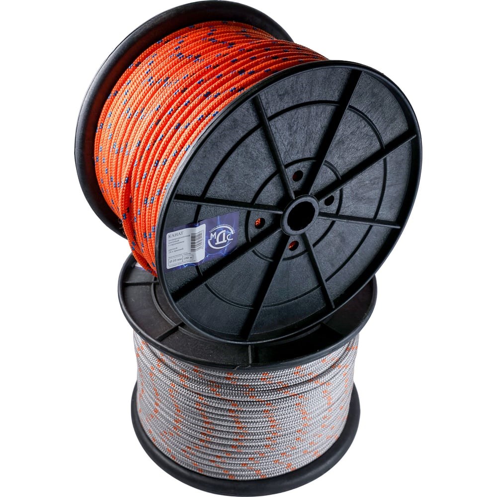 Канат полипропиленовый плетеный, ТОРГОВО-ПРОИЗВОДСТВЕННАЯ КОМПАНИЯ МДС, 10мм 24пр. с сердечником 100м 7930050320403 на 100% состоит из полипропилена. Изготовление из первичного сырья и использование сердечников из крученых нитей, позволяет изделию держать нагрузки в двое превышающие аналоги существующие на рынке. В процессе изготовления нитки, используются качественные красители и стабилизаторы, что в свою очередь делает веревку не только прочной, но и устойчивой к кислотам и ультрафиолету, позволяет не впитывать влагу, что очень удобно при использовании ее на воде. Шнур из полипропилена используется абсолютно в любой сфере учитывая разрывные характеристики.Разрывная нагрузка - 1220 кг. справочно.Внимание! Цвет товара может отличаться от представленного на фотографии.