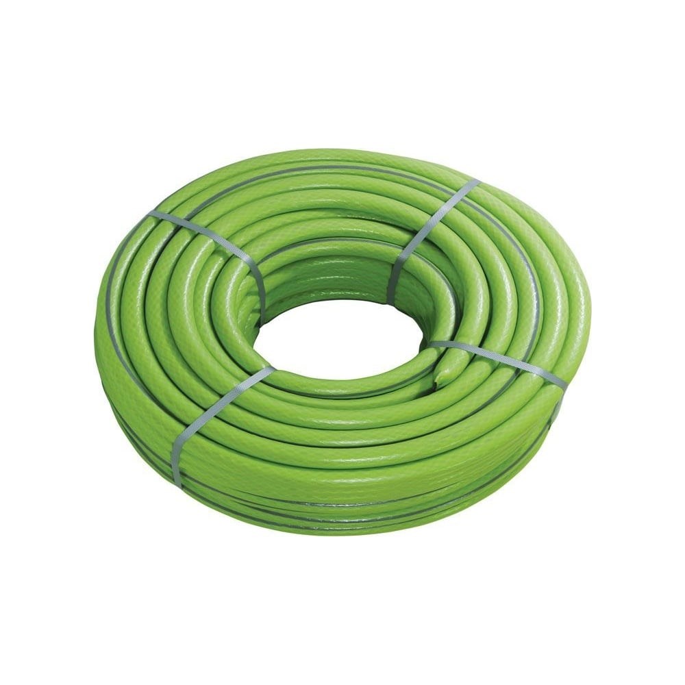 Армированный поливочный шланг USP Садовник, 3-слойный, лайм, 1/2"x25 м 77284-13 предназначен для полива. Благодаря высокой прочности прослужит долго. Имеет армированный слой, поэтому сохраняет свою первоначальную форму. Шланг выполнен из ПВХ, за счет чего не ржавеет.