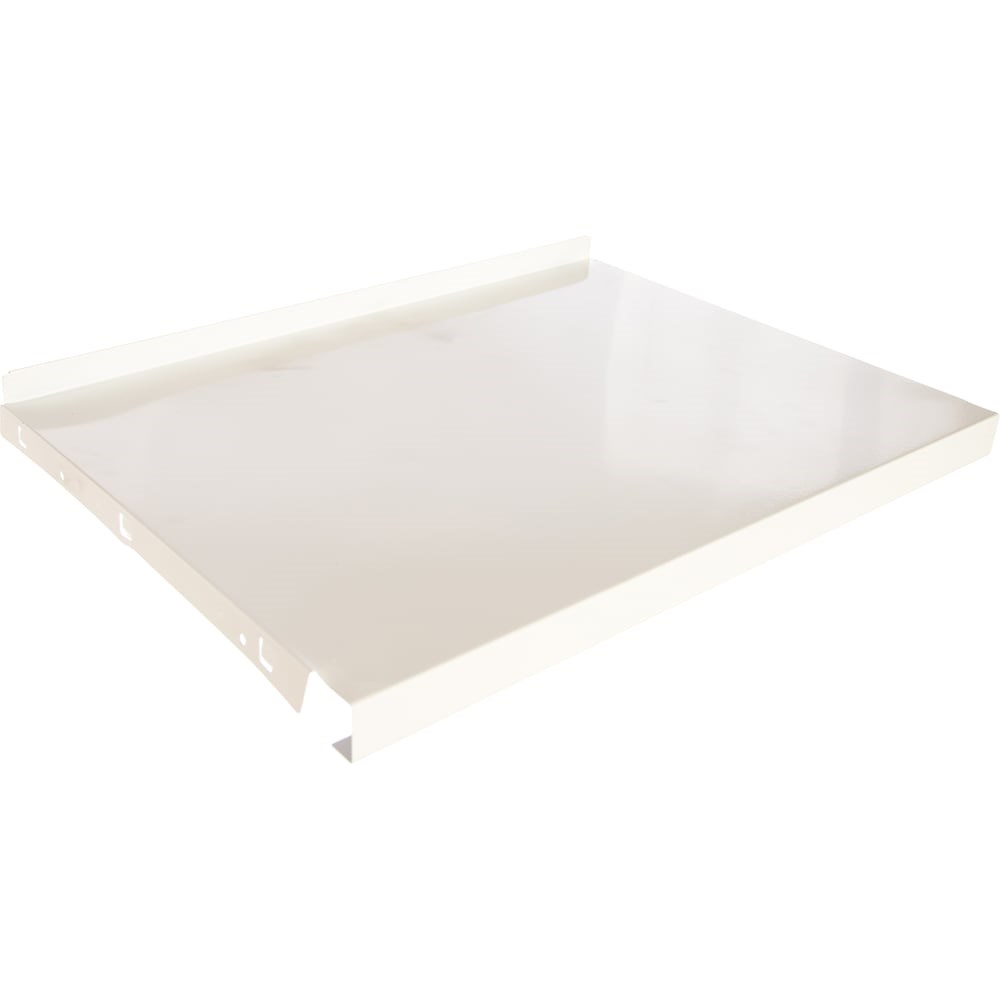Металлическая полка Титан-GS 597х427 352427 выполнена из металла, оснащена ребрами жесткости, что позволяет увеличить максимальный вес до 40 килограммов при равномерном распределении. Изделие крепится на стойки гардеробной системы.