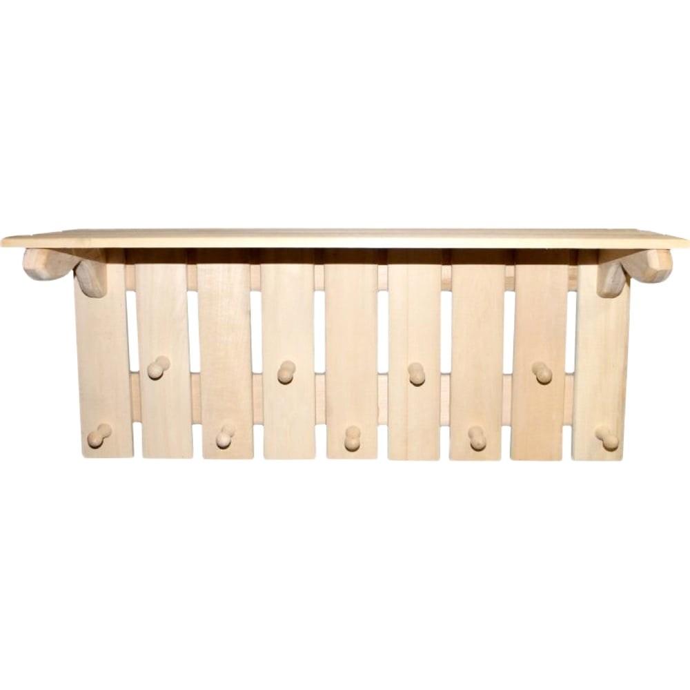 Деревянная вешалка для бани с 9 крючками из липы Цельная деревянная вешалка для бань, саун и ванных комнат. Изготовлена из массива липы с тщательной шлифовкой всех поверхностей. Дерево обработано специальным способом и не выделяет смолу, что гарантирует безопасность и комфорт при использовании. Характеристики: Материал: массив липы Общая ширина: 80 см Длина верхней полки: 29 см Толщина с крючками: 9 см Толщина без крючков: 4 см Длина крючков: 5 см Количество крючков: 9 Преимущества: Цельная конструкция из массива липы Идеально отшлифованные поверхности Не выделяет смолу благодаря специальной обработке Удобное размещение аксессуаров на 9 крючках Устойчивость к повышенной влажности и температуре Области применения: Бани и сауны Ванные комнаты Раздевалки и предбанники Гардеробные помещения Особенности эксплуатации: Не требует специального ухода. Рекомендуется периодически протирать сухой мягкой тканью. Сохраняет первоначальный вид и свойства даже при регулярном использовании в условиях повышенной влажности.