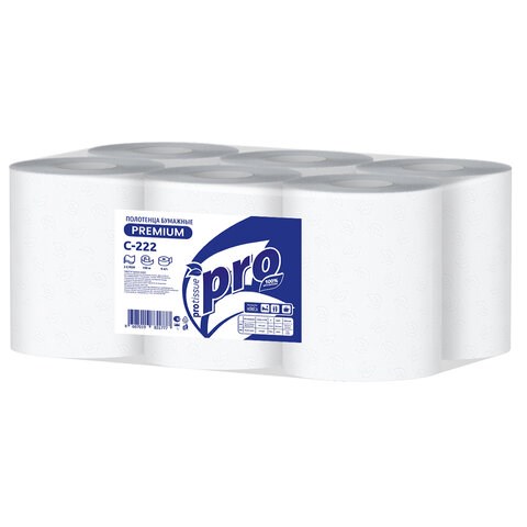 Полотенца бумажные рулонные 150 м, PROtissue (H1) PREMIUM, 2-слойные, белые, КОМПЛЕКТ 6 рулонов, С222