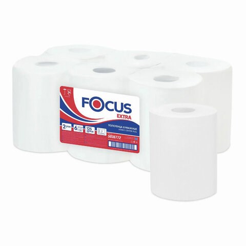 Полотенца бумажные с центральной вытяжкой 125 м FOCUS (Система М2) Jumbo, 2-слойные, белые, КОМПЛЕКТ 6 рулонов, 5036772
