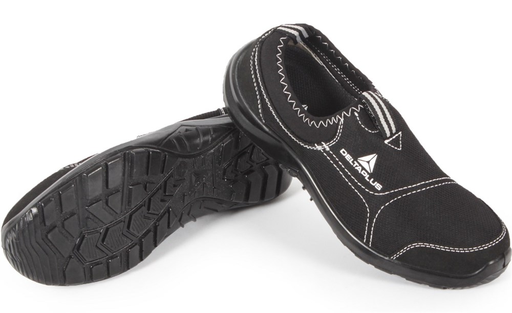 Туфли (кроссовки) комбинированные из коттона и полиэстера. Металлический защитный подносок. Литьевой метод крепления подошвы. Подошва двухслойная, устойчивая к проколам (вшитая стальная стелька) и к скольжению (тест SRC). Съемная формованная стелька.