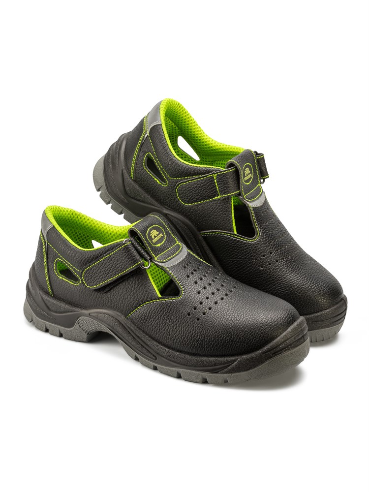 Кожаные открытые полуботинки-сандалии c фигурным мягким кантом и фронтальной перфорацией Prosafe серии Neon Lime обеспечивают оптимальную вентиляцию стопы при работе в жарких условиях. Текстильная сетчатая подкладка и съемная вкладная стелька создают комфортные условия носки в течении рабочей смены. Застежка на ремешке с фиксацией на "липучке" позволяет быстро отрегулировать обувь по полноте. Светоотражающие элементы повышают видимость работников в темное время суток, а также на неосвещенной территории. Подошва- двухслойная, маслобензостойкая, литьевого метода крепления. Промежуточный слой изготовлен из ПУ с внутренней амортизирующей вставкой в пяточной части подошвы, способной гасить нагрузки при ходьбе. Нижний ходовой слой- износостойкий ТПУ. Глубина протектора ходового слоя обеспечивает хорошую сцепляемость с поверхностями и препятствует скольжению за счет рельефа протектора. Термопластичный подносок обеспечивает защиту пальцев стопы. Высота 12 см