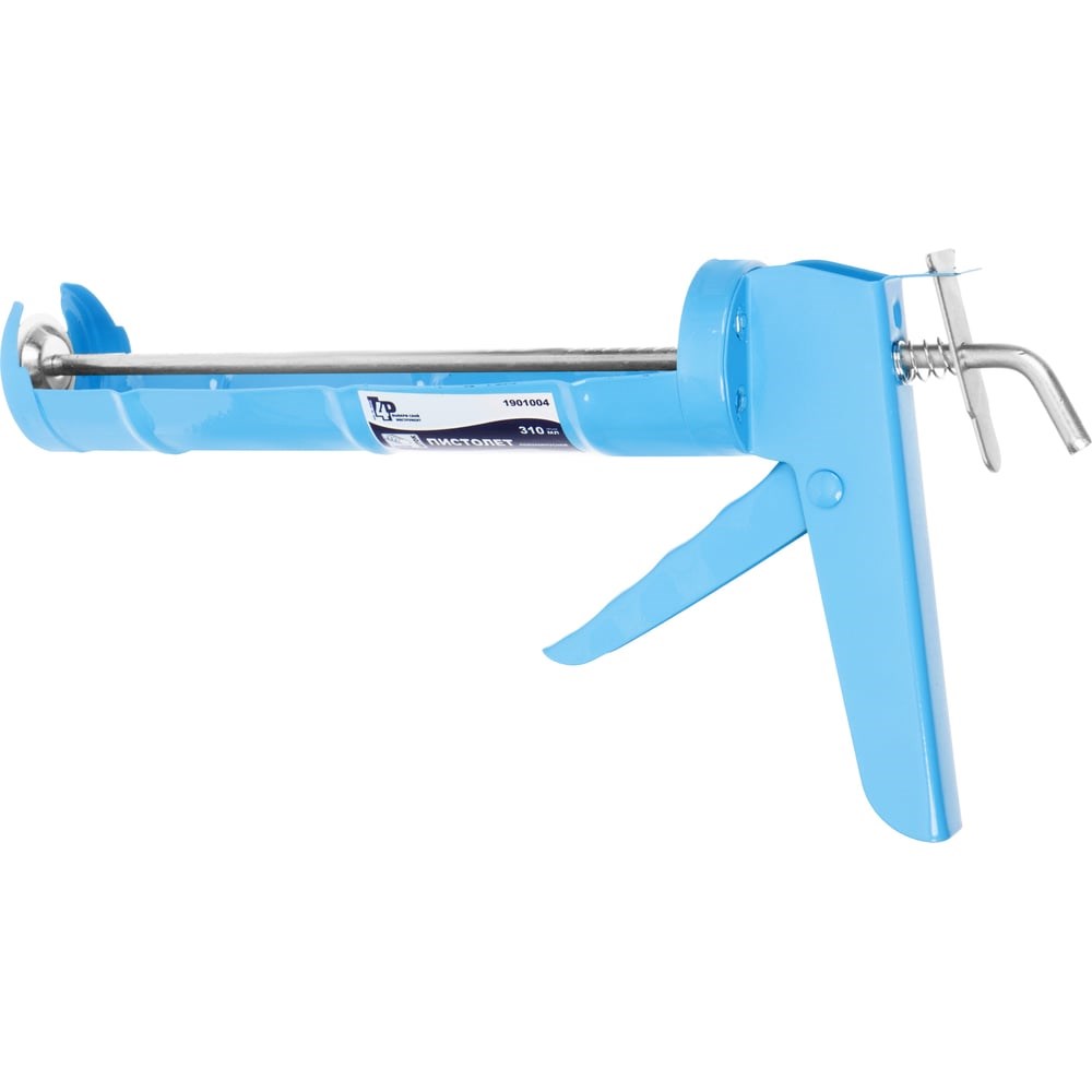 Пистолет полукорпусной Toolberg с зубчатым движущимся штоком 1901004 90002511079 применяется для выдавливания герметиков и иных отделочных составов из стандартных картриджей при выполнении отделочных работ. Имеет металлический корпус и гладкий шток. Конструкция корпуса усилена от перекоса поперечными ребрами жесткости.
