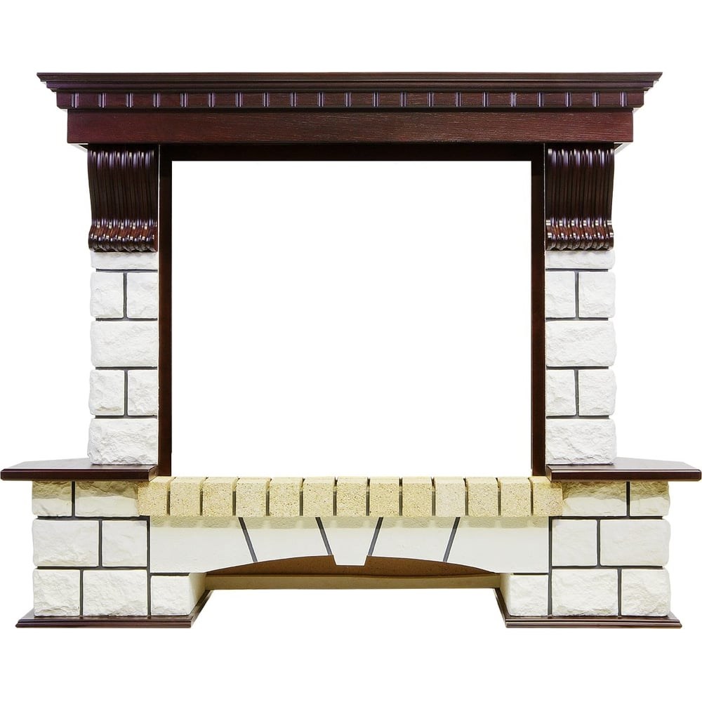 Портал Pierre Luxe – классическая модель, облицованная искусственным камнем. Идеально сочетается с электрическими очагами Royal Flame. Такой каминокомплект станет гармоничным дополнением интерьера городской квартиры или загородного дома. Модель представлена в нескольких вариантах, различающихся как по принципу установки (угловой или пристенный), так и цветовым решением облицовочного камня и деревянных элементов. Декорирована резными вставками в античном стиле. Портал очень прост в установке, не требует сложно монтажа – достаточно поставить его в выбранное место, поместить в нишу электрический очаг, подключить к сети и наслаждаться уютной атмосферой огня в камине.