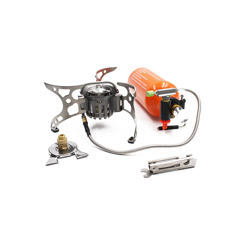 Мультитопливная плита Следопыт PF-GSP-M02M подходит для приготовления пищи на 6-8 человек. Прекрасный вариант для использования в туристическом походе или экспедиции. Работает на сжиженном газе в баллонах PF-FG-230, PF-FG-450 и PF-FG-600 с резьбовым клапаном, либо от жидкого топлива. Насосный узел имеет резьбовую посадку, идентичную клапану газового баллона. Это позволяет питать плиту от газовых баллонов и топливной фляги, не сменяя клапан. При эксплуатации модели на жидких видах топлива рекомендуется применять очищенное топливо СЛЕДОПЫТ PF-FL-500, которое рассчитано на полную разовую заправку. В комплекте поставляется многофункциональный ключ для удобной разборки и чистки прибора.