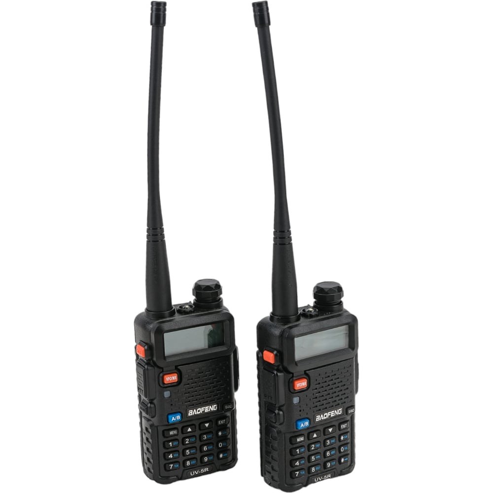 Портативная радиостанция Baofeng UV-5R, 1800мАч, 136-174/400-480 МГц, 127 каналов, 5 Вт, 2 шт 00029100 можно использовать и как радио, и как переговорное устройство с одним или двумя абонентами одновременно. Устойчивая радиосвязь на относительно больших расстояниях. Отличное качество связи будет на расстоянии до 1000 метров в городских условиях и 2 км за городом. В лесу или при движении вы сможете связаться с абонентами, которые находятся в 5 км, а на открытой местности – в 10 км. Длительная работа без подзарядки. Аккумулятора хватит на 24 часа при активном применении рации. Предусмотрен экономичный режим, благодаря которому зарядка не потребуется несколько суток. Такой приемник можно брать в многодневный поход или на охоту. Солидный объем памяти. Вы можете сохранить до 128 каналов и быстро переключаться между абонентами. Это важно для больших групп. Поддержка субтонов в форматах CTCSS и DCS. С их помощью можно исключить помехи и игнорировать посторонние передачи на тех же частотах. Установив одинаковые субтоны для своей группы, вы избавитесь от чужих разговоров.