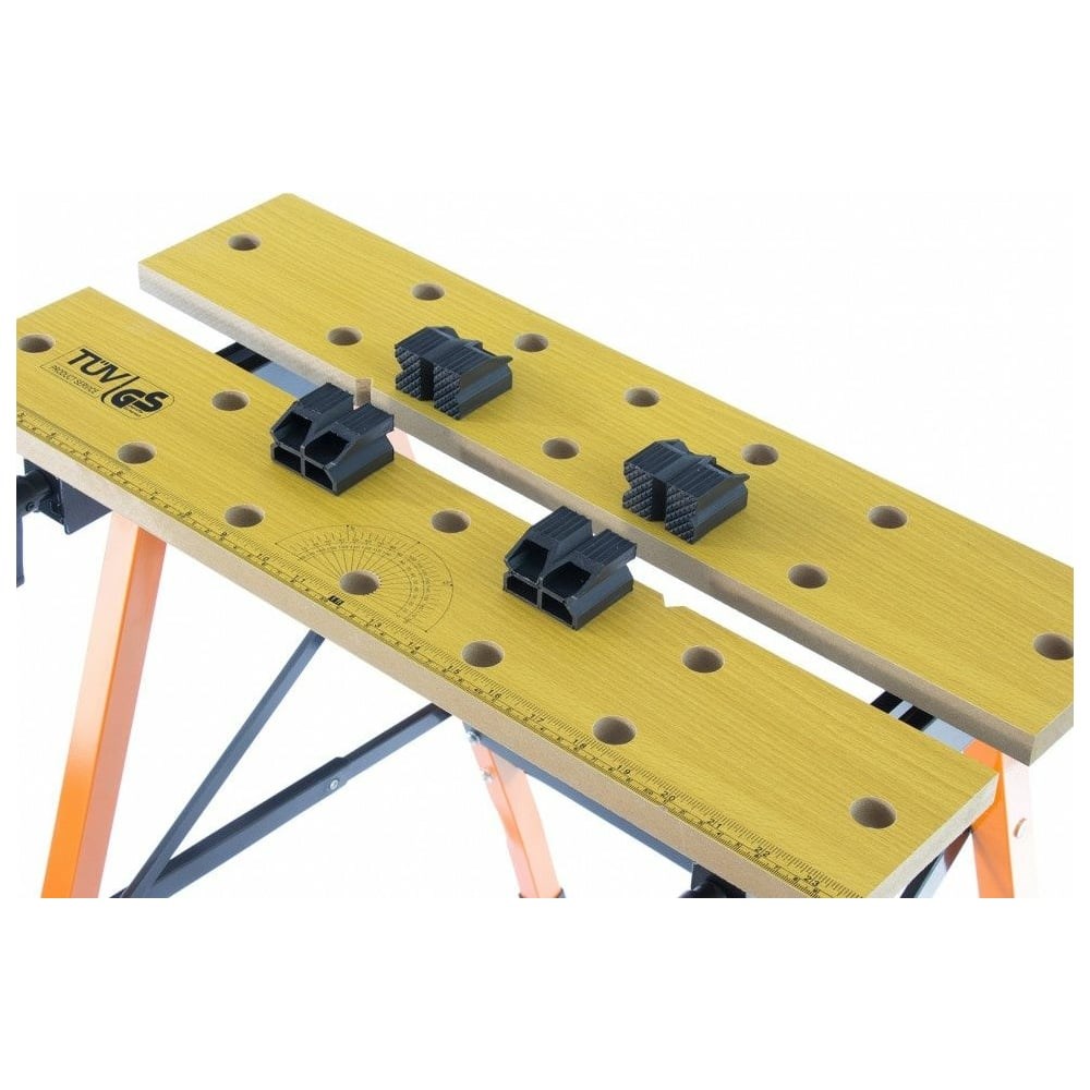 Портативный верстак-тиски SPARTA 605x635x750 мм 257065 служит для зажимания заготовок и используется при проведении столярных и слесарных работ. Столешница верстака представляет собой тиски из двух раздельных блоков, которые позволяют фиксировать даже детали с непараллельными гранями. Верстак пригодится в частной мастерской и дома. Установку верстака необходимо осуществлять на ровной поверхности для максимальной устойчивости и исключения травм из-за несоблюдения техники безопасности.