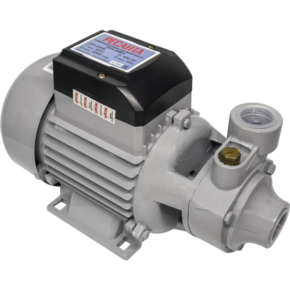 Поверхностный насос Ресанта ПСН-3300Ч – одно из лучших решений для организации полива сада и огорода, перекачки жидкости из одной емкости в другую. Устройство также используют для перемещения воды из резервуаров, скважин в жилые постройки.Особенность такого насоса заключается в том, что для работы его не нужно опускать в воду. Устройство устанавливают рядом с резервуаром, а забор воды происходит через специальный шланг.Отличительные особенности Ресанта ПСН-3300Ч:Устройство функционирует при помощи асинхронного однофазного электродвигателя мощностью 0,65 кВт.Функция самовсасывания позволяет забирать воду с глубины в 9 м и менее.Ресанта ПСН-3300Ч поднимет воду на высоту до 45 м.Корпус насосной части двигателя выполнен из чугуна.В работе важно использовать только чистую воду, не содержащую волокнистых включений. Допустимое количество твердых частиц в воде не должно превышать 150 г/м³.Производительность насоса составляет 3300 л/час.Термозащита электродвигателя предохраняет от поломок при большой нагрузке.Поверхностный насос поможет подать воду под давлением на ферму, приусадебный участок, жилой дом. Он легкий и мобильный. Вес устройство составляет всего 7,75 кг.
