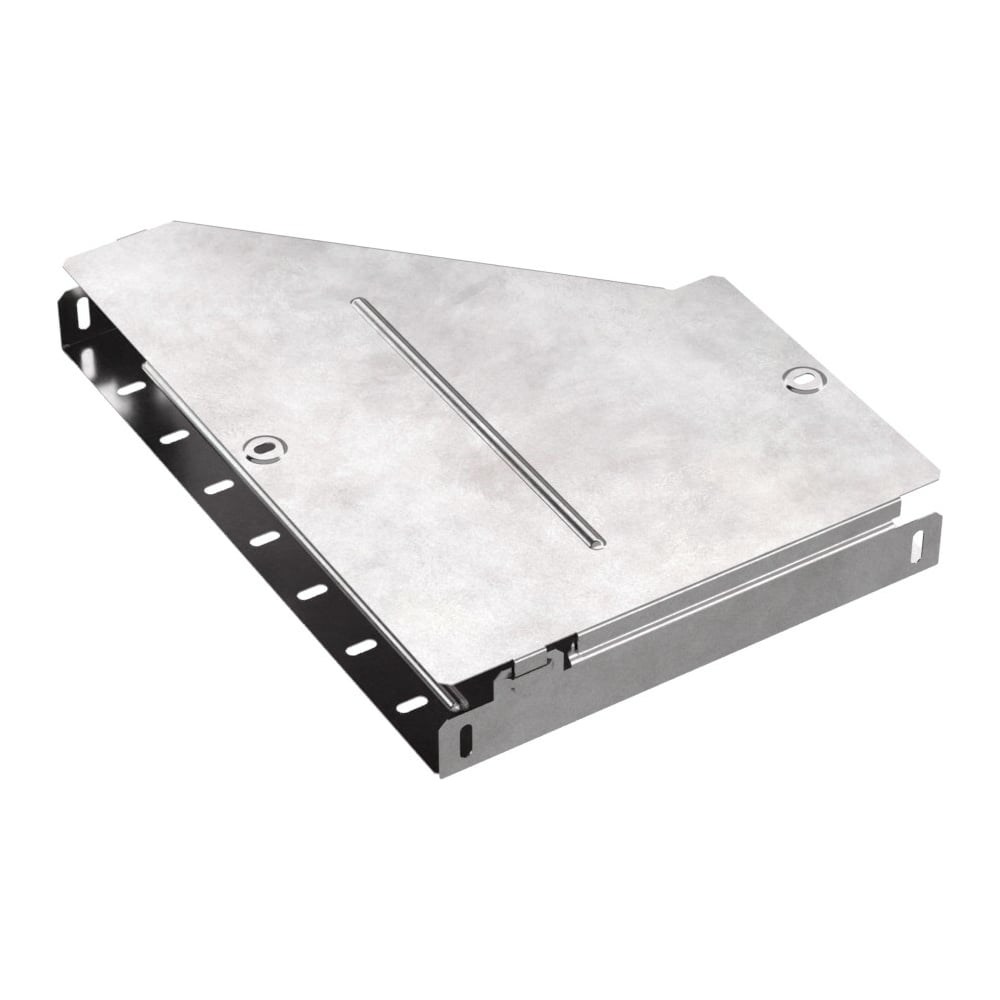 Аксессуары изготовленные из стали с защитным покрытием по методу Сендзимира – это изделия, на которых защитное цинковое покрытие было нанесено на листовую сталь перед изготовлением. Толщина защитного покрытия варьируется от 10 до 22 мкм. Климатическое исполнение изделий УХЛ2, что предусматривают эксплуатацию в помещении и под навесом, при температуре эксплуатации от -80 до +150°С. Переходник правый предназначен для перехода с одной ширины лотка на другую. В комплект входит крышка.