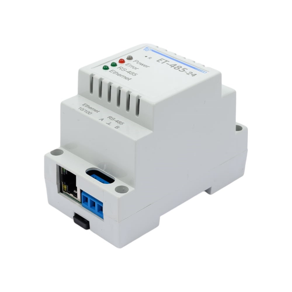 Дополнительные технические характеристики: Назначение - предназначен для обмена данными через сеть Ethernet 10BASE-T и 100BASE-T с оборудованием, оснащенным интерфейсом RS-485 и образующим сеть Modbus. Гибкая адресация в сети Ethernet (переопределение MAC-адреса, статический или динамический IP-адрес); Защита доступа через сеть Ethernet (пароль режима настройки, фильтр IP-адреса для настройки или для подключения к сети Modbus). Различные режимы обмена по сети Modbus RTU или ASCII, с проверкой четности на чет, нечет и без проверки, широкий диапазон скоростей передачи, настраиваемая задержка).