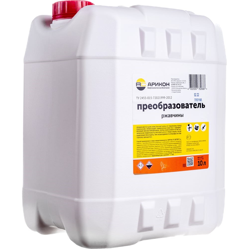 Преобразователь ржавчины АРИКОН 10 л 00-00001509 - высококонцентрированный раствор, позволяющий удалять или модифицировать ржавчину или окалину практически любой толщины. Также консервирует металлические изделия на срок до 1 года для условий У-1. Используется перед окрашиванием металлических поверхностей.