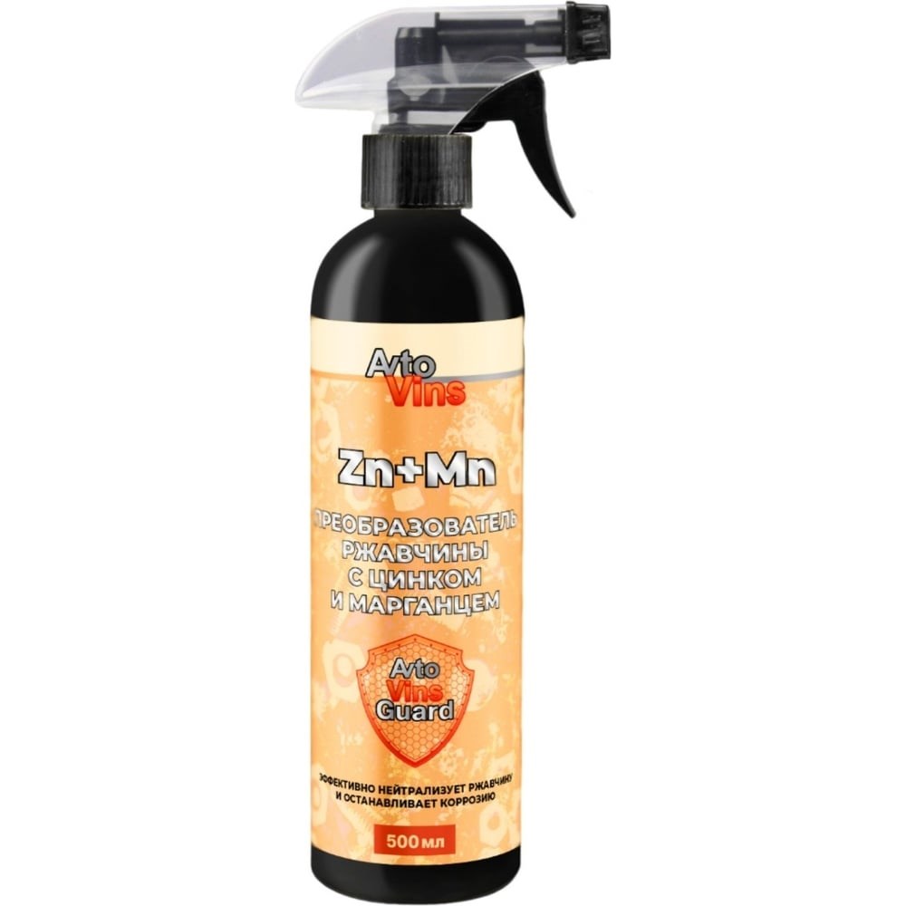 Преобразователь ржавчины Avto Vins Guard с цинком и марганцем поможет Вам легко справится с ржавчиной как в авторемонте, так и в быту (например, для очистки сантехники от налетов ржавчины). Средство от ржавчины легко нанести на поверхность - оно распыляется при помощи триггера. Средство растворяет поверхностную ржавчину при помощи ортофосфорной кислоты, входящей в состав. А также образует защитное цинковое покрытие благодаря солям цинка в составе. Очиститель Avto Vins Guard многократно замедляет процесс повторного образования коррозии, защищает обработанную поверхность. Способ применения: поверхность очистить от грязи, пыли и т.д. Хорошо встряхнуть содержимое флакона. Нанести средство на сухую поверхность с помощью распылителя. Для лучшего, равномерного, нанесения можно пройтись кистью. Выдержать до полного высыхания. Время протекания реакции около 30 минут. Затем при помощи мелкой шкурки зачистить обработанную поверхность от остатков средства. При необходимости повторить обработку.