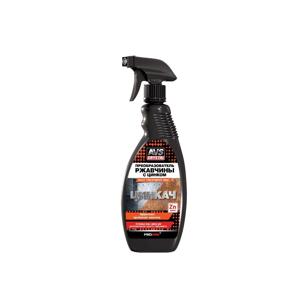 Преобразователь ржавчины AVS AVK-181 ЦИНКАЧ 500 мл A07077S удаляет ржавчину. Благодаря наличию цинка в составе обеспечивается дополнительная защита. Спрей упрощает нанесение состава.