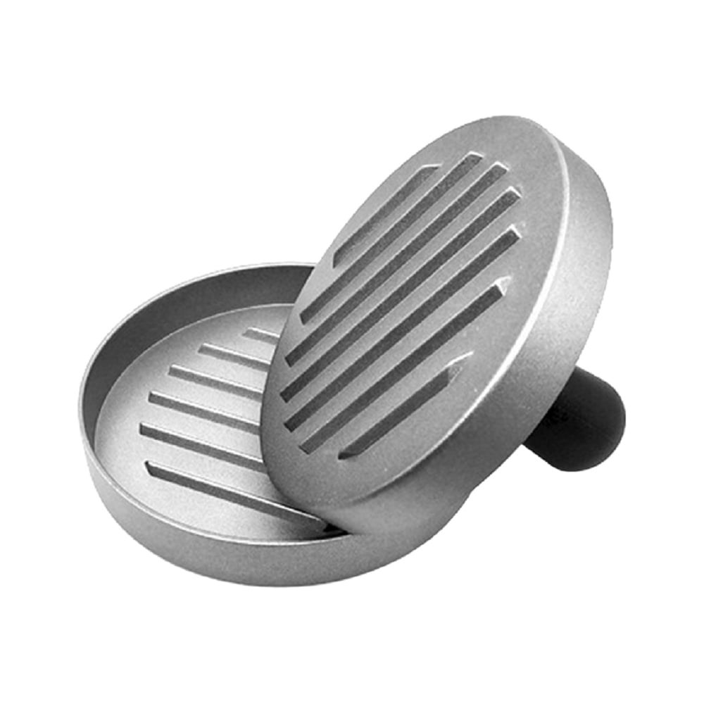 Удобный в применении аксессуар позволит формировать котлеты без использования яиц, муки и других связующих ингредиентов. Используя пресс, вы существенно сэкономите время приготовления гамбургеров и бифштексов. В отличие от ручного способа, формирование котлет с помощью специального аксессуара займет несколько секунд. Пресс для гамбургеров можно использовать не только для изделий из мясного фарша. С его помощью вы сможете приготовить ровные, равномерно прожаренные зразы с разнообразными начинками и сырники. Пресс для гамбургеров изготовлен из алюминия. Легко чистится от загрязнений и остатков фарша. Рифленая поверхность на дне и крышке придаст заготовкам классический для блюд барбекю вид.