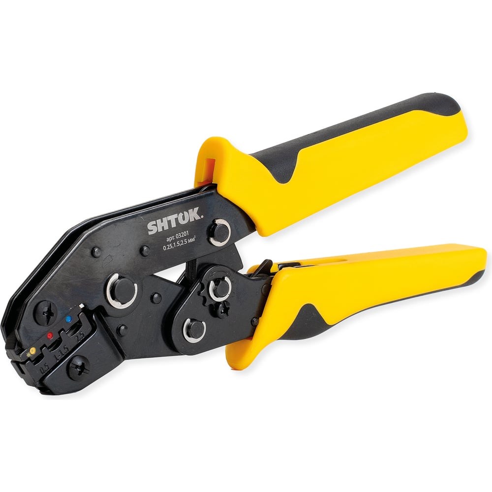 Пресс-клещи ПК-19+ с матрицей для опрессовки изолированных наконечников, гильз и разъемов с красной, синей и желтой манжетами Тип наконечников: НКИ, НКИ(н), ВНКИ, НВИ, НИК, НШПИ, НШКИ, ВРПИ-П, ВРПИ-М, РПИ-П(н), РПИ-М(н), ВРШИ-П(н), ВРШИ-М(н), ГСИ, ГСИ(н), ГСИ-П Сечение, мм2: 0,25-2,5 Профиль обжима: овальный, двухконтурный Материал чехлов рукояток: PP и TPR Вес, г.: 390 Длина, мм: 195