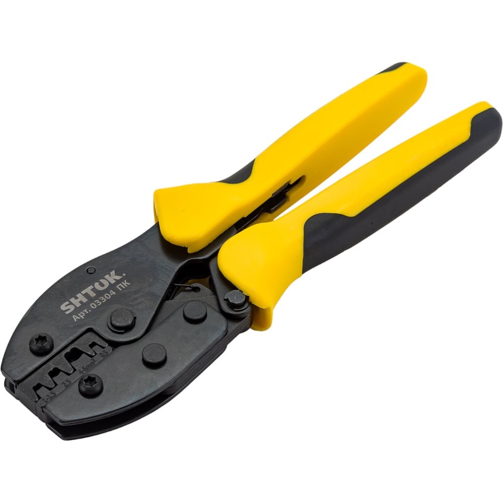 Пресс-клещи SHTOK 03304 относится к классу профессионального электромонтажного инструмента. Данная модель позволяет осуществлять обжим неизолированных коннекторов с площадью сечения от 0.5 до 6 квадратных мм. Ручки пресс-клещей покрыты двухкомпонентными чехлами: зоны из мягкого пластика обеспечивают более удобный захват. Рабочая часть изготовлена из качественной стали и устойчива к коррозии благодаря хромированию.