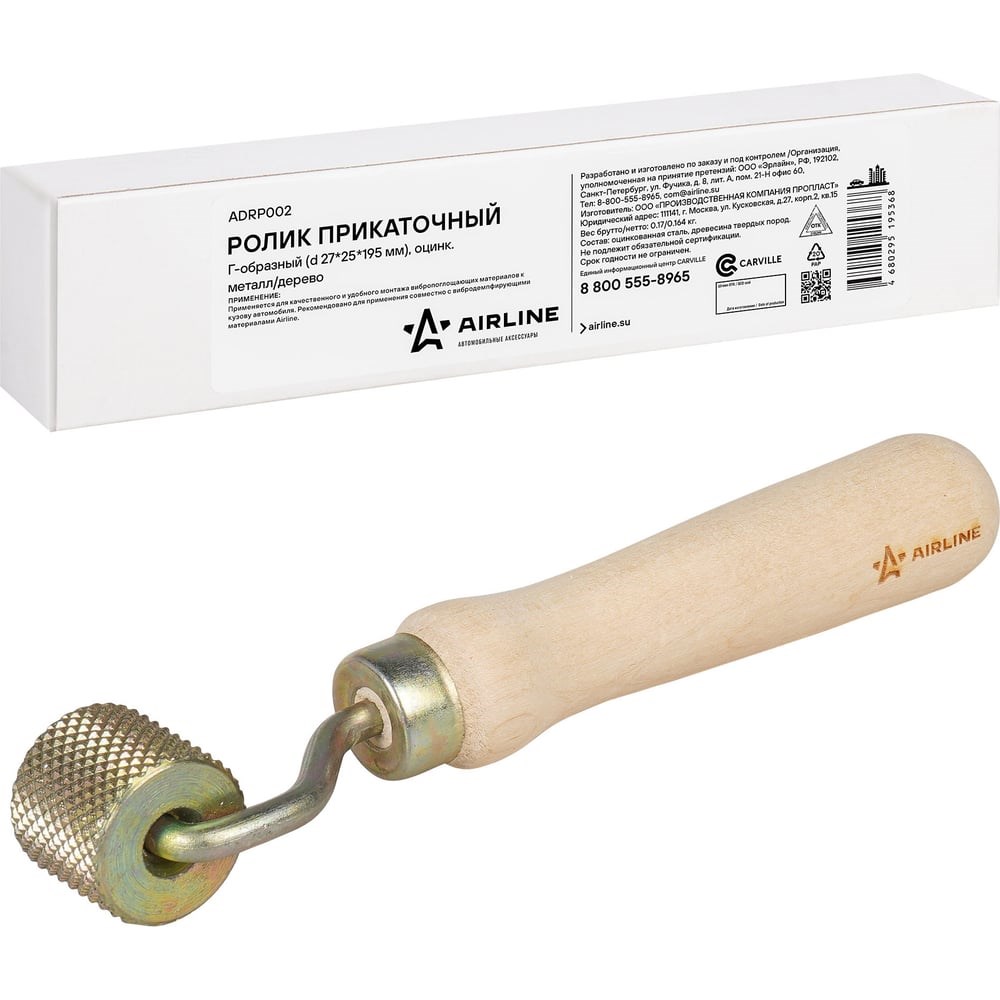 Прикаточный Г-образный ролик Airline оцинкованный металл, дерево ADRP002 предназначен для качественного и удобного монтажа вибропоглощающих материалов к кузову автомобиля. Металлический ролик снабжен насечкой, предотвращающей скольжение по алюминиевой фольге. Ролик предназначен для обеспечения максимально плотного контакта между вибродемпфирующим материалом и поверхностью кузова автомобиля. Все поверхности перед монтажом должны быть очищены от пыли, грязи, ржавчины, обезжирены и высушены.