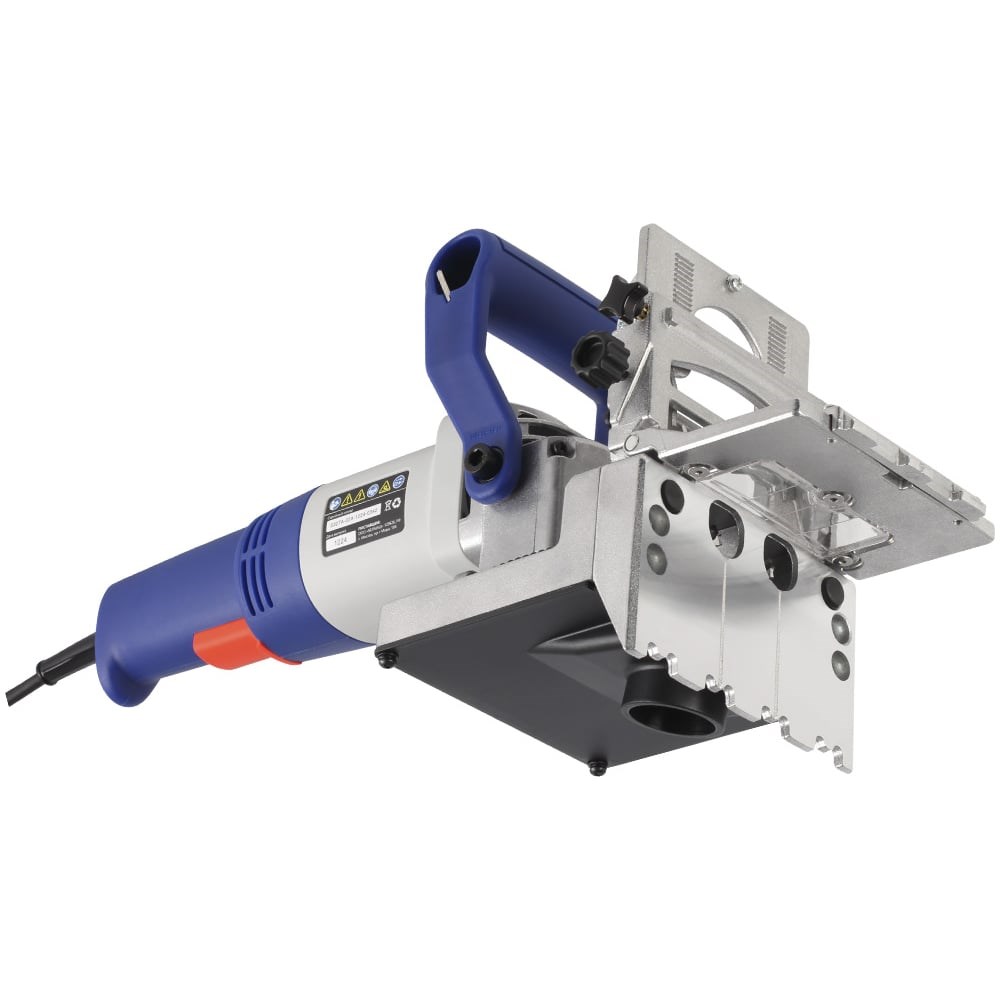 Фрезер присадочный BELMASH MRP-760 – это портативный ручной электроинструмент с сетевым приводом и режущим инструментом в виде двух концевых фрез. Предназначен для создания равномерно расположенных шкантовых отверстий в заготовках из древесины с целью их соединения между собой. Регулировка угла наклона упора от 0° до 90° и глубины/высоты в диапазоне 0-40 мм позволяют обрабатывать сложные конструкции. Для быстрой и простой настройкиугла наклона, на шкале имеются установочные упоры на 22,5°, 45° и 67,5° Двойное фрезерование обеспечивает быстрое и точное соединение деталей. Фрезер оснащен несколькими указателями, которые помогают позиционировать инструмент относительно заготовки. Корпус фрезера расположен в горизонтальной проекции. Нижняя часть инструмента оснащена функциональным узлом, отвечающим за процесс фрезерования. Установка фрезы в диапазоне 6-12 мм позволяет делать отверстия необходимого диаметра. Быстрая установка глубины фрезерования, реечный механизм для точной регулировки высоты позволяют легко производить настройку инструмента. Управлять присадочным фрезером можно одной рукой, но для удобства работы предусмотрена вспомогательная рукоятка, позволяющая более уверенно держать инструмент. Вспомогательная рукоятка содержит в себе дополнительный шестигранный ключ для замены сверла.