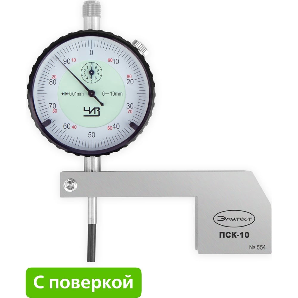 Приспособление Элитест ПСК-10 предназначено для измерения смещения кромок, параметров стыкового сварного шва и дефектов. Приспособления характеризуются высокой точностью измерения, поэтому наилучшим образом подходит для контроля глубины дефектов. Индикатор часового типа имеет диапазон измерения 10 мм с ценой деления 0,01 мм. Расстояние между основанием опорного кронштейна и измерительным наконечником индикатора равно 50 мм. Подобная конструкция позволяет измерять не только глубину подрезов, но и смещение кромок. В комплекте приспособления для измерения глубины подрезов имеются два измерительных наконечника: плоский измерительный наконечник для измерения выпуклости стыкового шва и его корня; острый измерительный наконечник для измерения глубины подреза, вогнутости стыкового шва и его корня, смещения кромок и глубины скоса кромок.