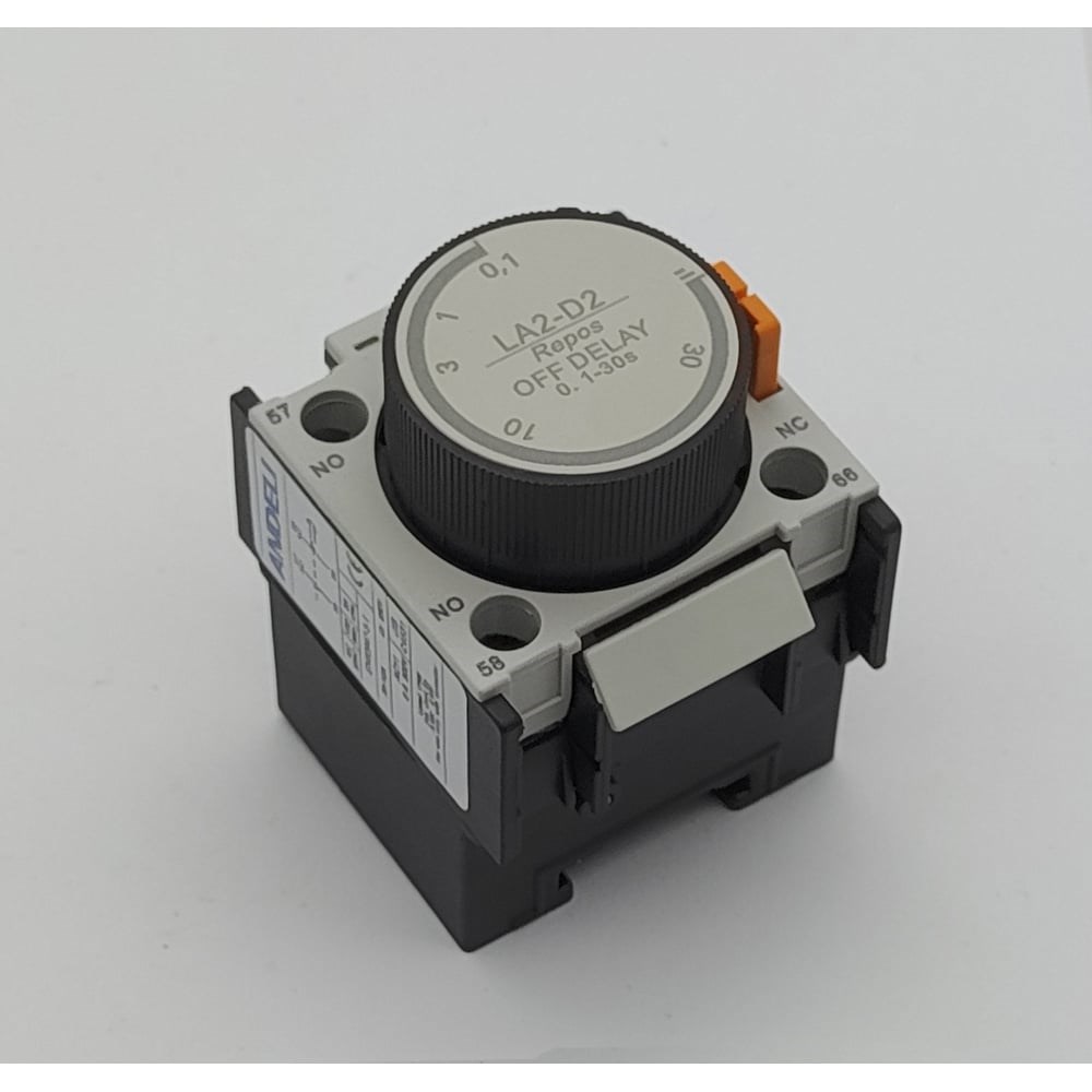 Приставка с выдержкой времени LA2 предназначена для установки на контакторы CJX2. Применяется в качестве комплектующих изделий в стационарных установках, в схемах управления электроприводами. Приставка предназначена для создания выдержки времени при включении или отключении контактора, пускателя. Время устанавливается вручную, с помощью поворотного регулятора вверху приставки. Приставка механически соединяется с контакторами, пускателями и фиксируются при помощи защелки.