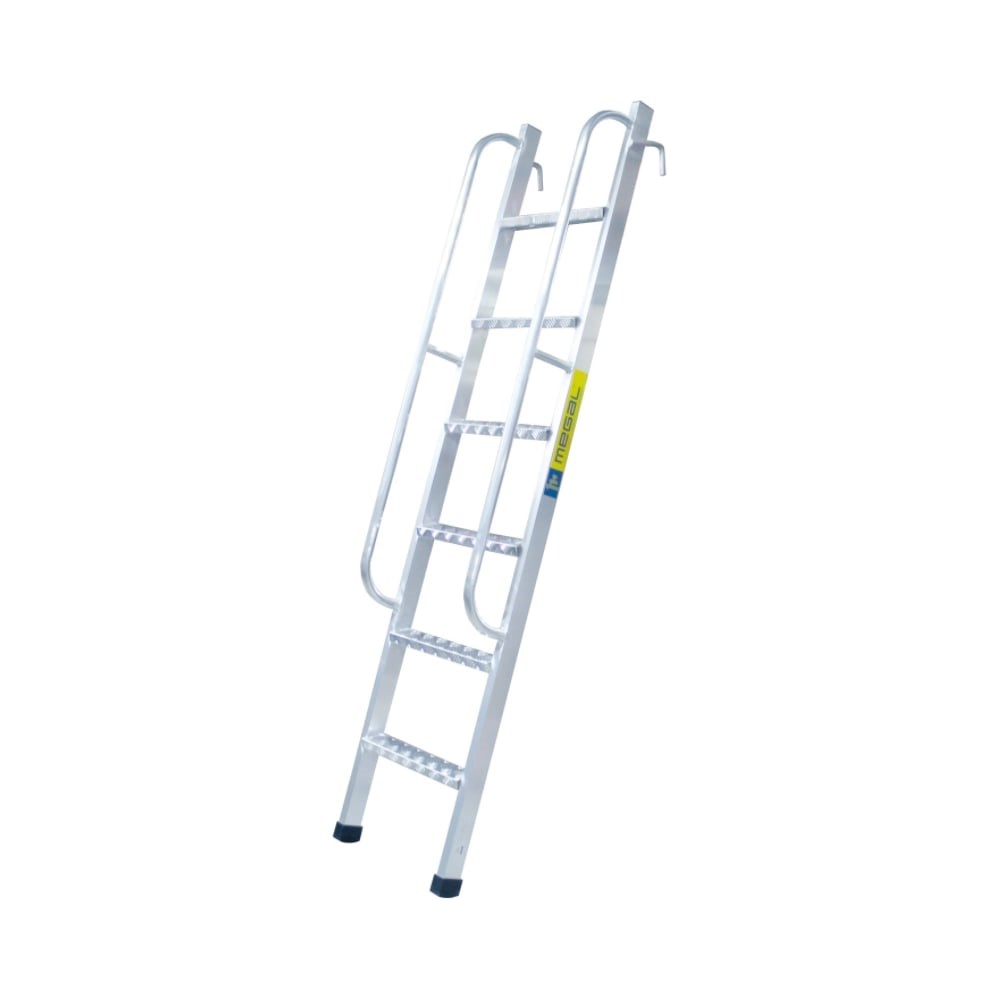 Приставная стеллажная лестница с поручнями MEGAL ЛПС-2.5 4687201846352 применяется при проведении строительных и монтажных работ на высоте. На верхних концах тетив имеются два крюка для навешивания используемой лестницы на трубу (профиль). Удобные ступени из рифленого листа квинтет обеспечивают комфортный подъем и спуск. Для безопасности снизу модель оснащена резиновыми противоскользящими башмаками и поручнями по бокам. Соединения ступеней и тетивы, выполненные посредством аргонно-дуговой сварки, увеличивают надежность и долговечность лестницы. Обратите внимание! Количество ступеней не соответствует представленному на фото.