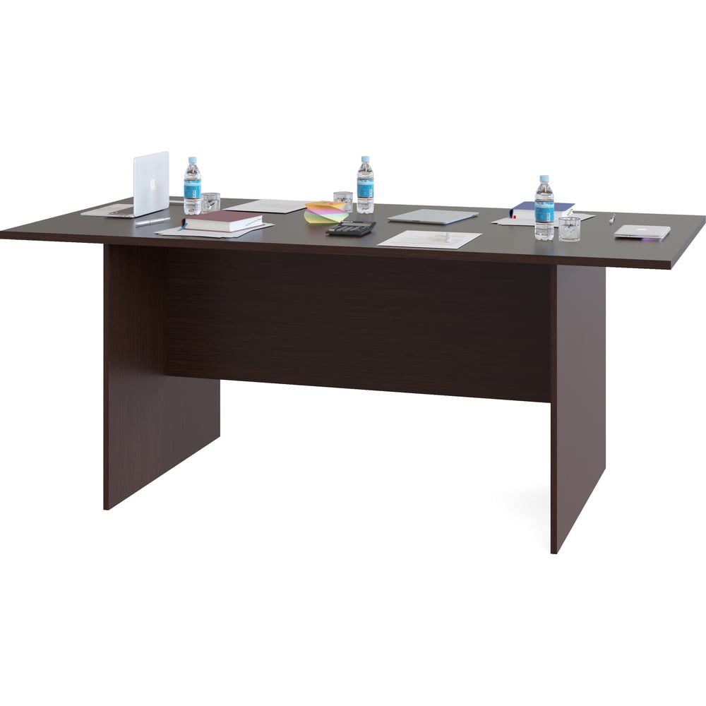 Приставной стол СОКОЛ венге СПР-05 СПР05В5 служит для меблировки конференц-зоны. Позволяет разместить до восьми человек. Модель можно дополнить полукруглой брифинг-приставкой, которая позволит организовать овальный переговорный стол. Изделие выполняется из ЛДСП толщиной 22 мм. Края обработаны кромкой ПВХ 2 и 0,4 мм.