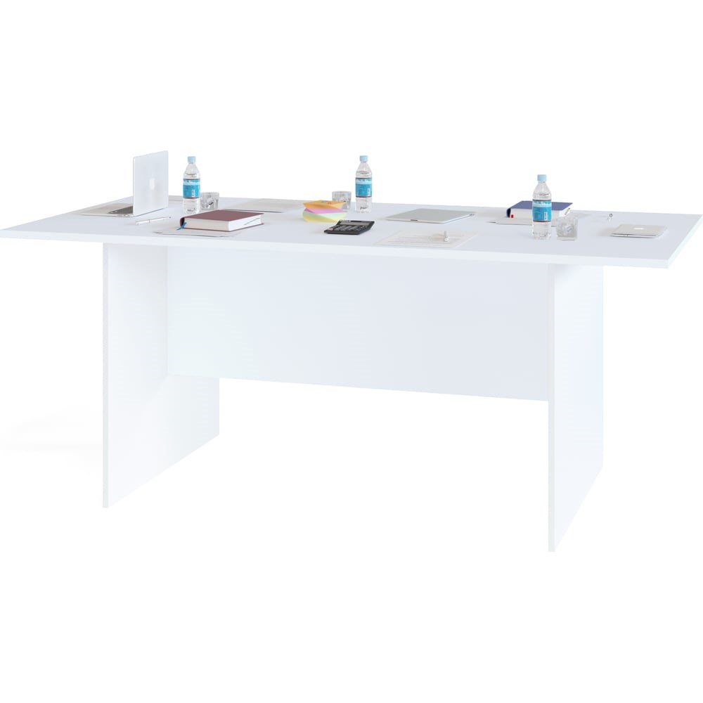 Приставной стол СОКОЛ белый СПР-05 СПР05Б6 для переговоров СПР-05 служит для меблировки конференц-зоны. Позволяет разместить до восьми человек. Модель можно дополнить полукруглой брифинг-приставкой, которая позволит организовать овальный переговорный стол. Изделие выполняется из ЛДСП толщиной 22 мм. Края обработаны кромкой ПВХ 2 и 0,4 мм.